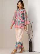 The top comes in a relaxed straight fit with 3/4th sleeves, detailed borders, and a sophisticated round neckline. Paired with matching wide-leg printed trousers, this outfit offers both style and comfort in one go. Its lightweight fabric ensures all-day ease, while the colourful print adds a refreshing, statement-making touch to your wardrobe.