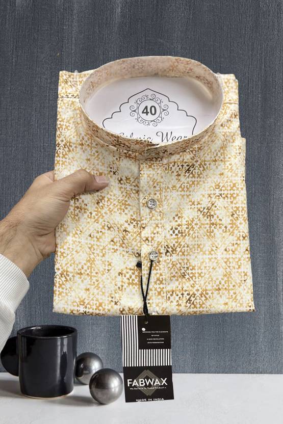 FABWAX brings to you Men’s Tunic Ethnic Wear Kurta Pajama Set that is designed for special occasions where you wish to look your best. This 2-piece set includes a long button-down kurta and drawstring pajama. Traditional design on this kurta captures all of the details of the classic Indian men's garment with long sleeves, a long hemline with side vents, and a mandarin collar. The entire set is made from a soft fabric that ensures comfort throughout the day. It is very easy to wear this kurta and pajama without experiencing any kind of discomfort. FABWAX Men’s Tunic Ethnic Wear Kurta Pajama Set is suitable for a wedding, a party as well as for a festive occasion because of its beautiful design and elegance.