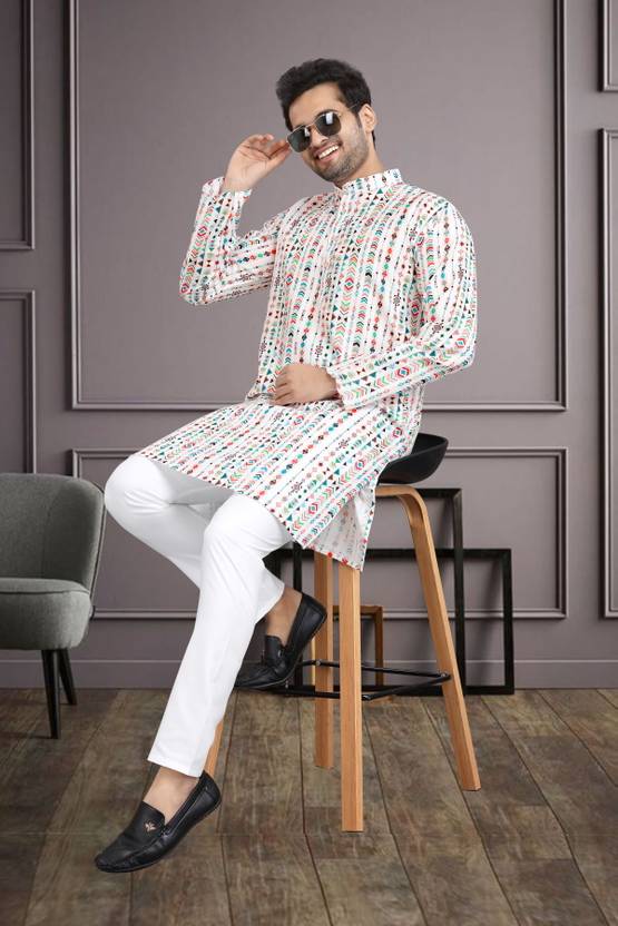 FABWAX brings to you Men’s Tunic Festive Wear Kurta Pajama Set that is designed for special occasions where you wish to look your best. This 2-piece set includes a long button-down kurta and drawstring pajama. Traditional design on this kurta captures all of the details of the classic Indian men's garment with long sleeves, a long hemline with side vents, and a mandarin collar. The entire set is made from a soft fabric that ensures comfort throughout the day. It is very easy to wear this kurta and pajama without experiencing any kind of discomfort. FABWAX Men’s Traditional Wear Kurta Pajama Set is suitable for a wedding, a party as well as for a festive occasion because of its beautiful design and elegance.