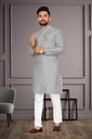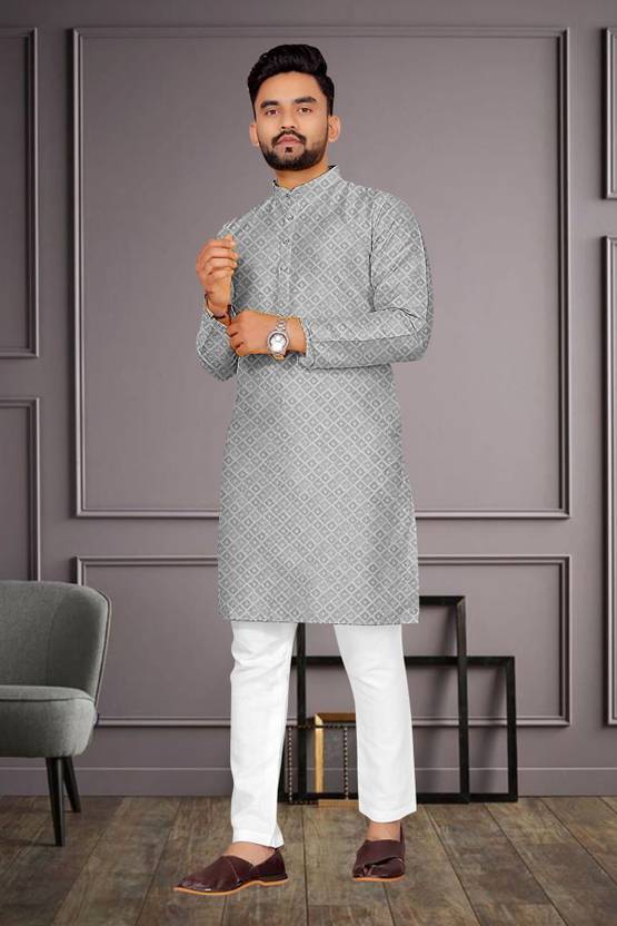 Men Self Design Cotton Silk Straight Kurta (Grey)
