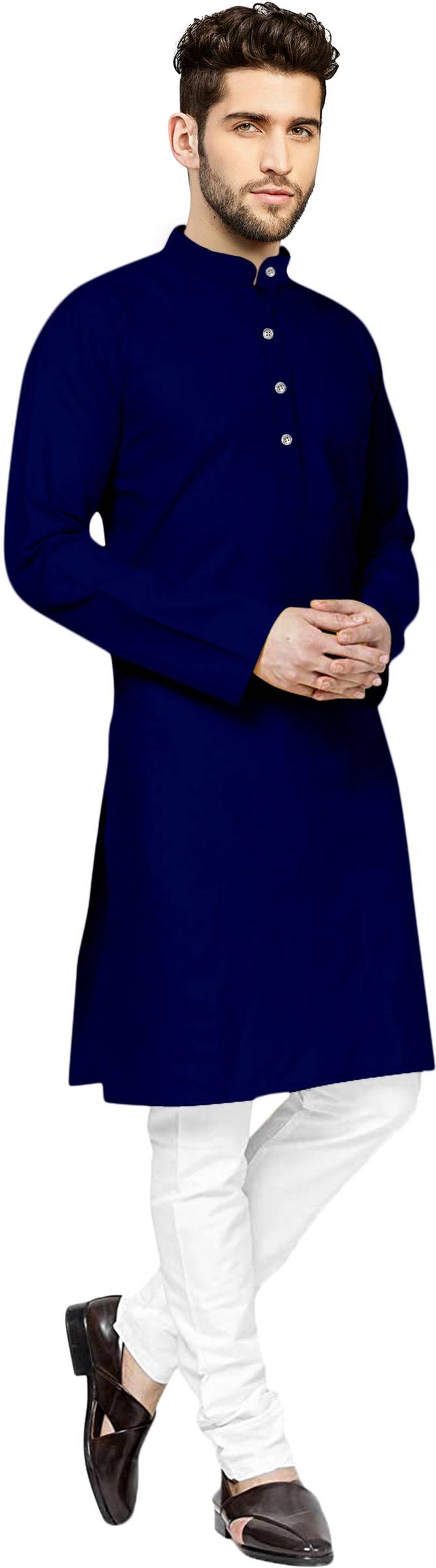 FABWAX Men Solid Cotton Blend Straight Kurta  (Dark Blue)