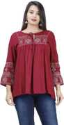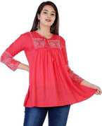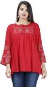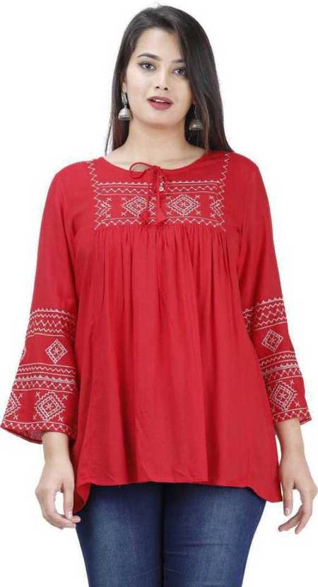 Kyyra Casual Embroidered Women Red Top