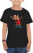Boys Printed Pure Cotton Regular T Shirt (Black, Pack of 1)