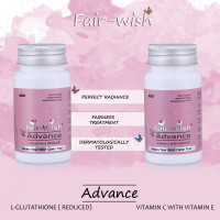 This Fair Wish Advance L Glutathione Tablet for Glowing and Fair Skin is enriched with safe ingredients and provides a natural glow. The powerful antioxidant L Glutathione acts like a cleanse and detoxes the skin. Other ingredients, such as vitamins C and E, support the skin's rejuvenation by keeping it nourished and moisturised throughout. The product is safe to use.