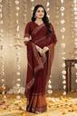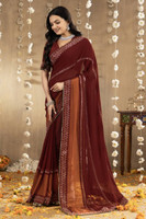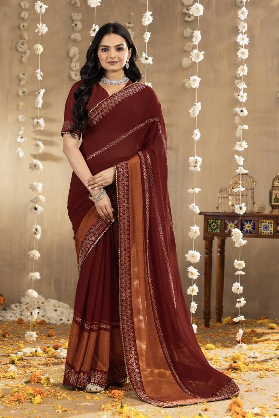 FAIRYPINK Solid/Plain, Self Design, Embellished, Dyed Bollywood Georgette Saree (Maroon)