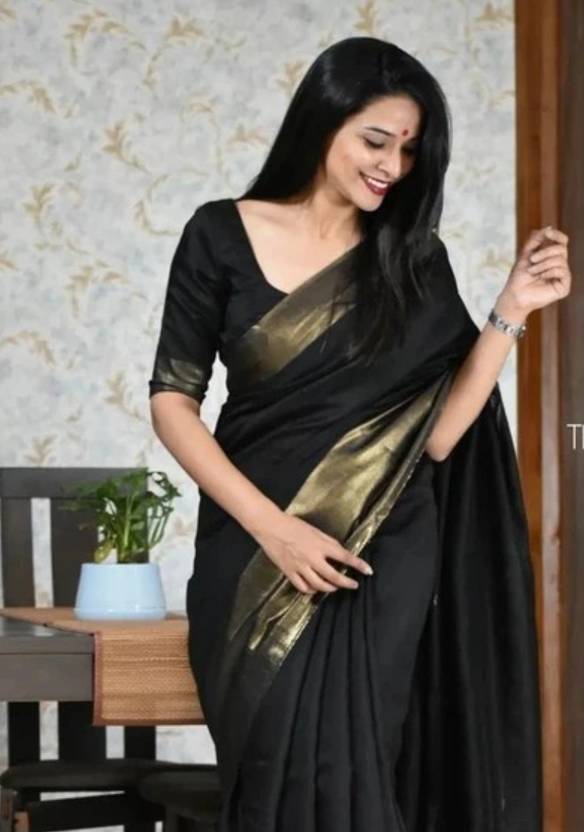 Solid/Plain Bhagalpuri Cotton Silk Saree (Black)
