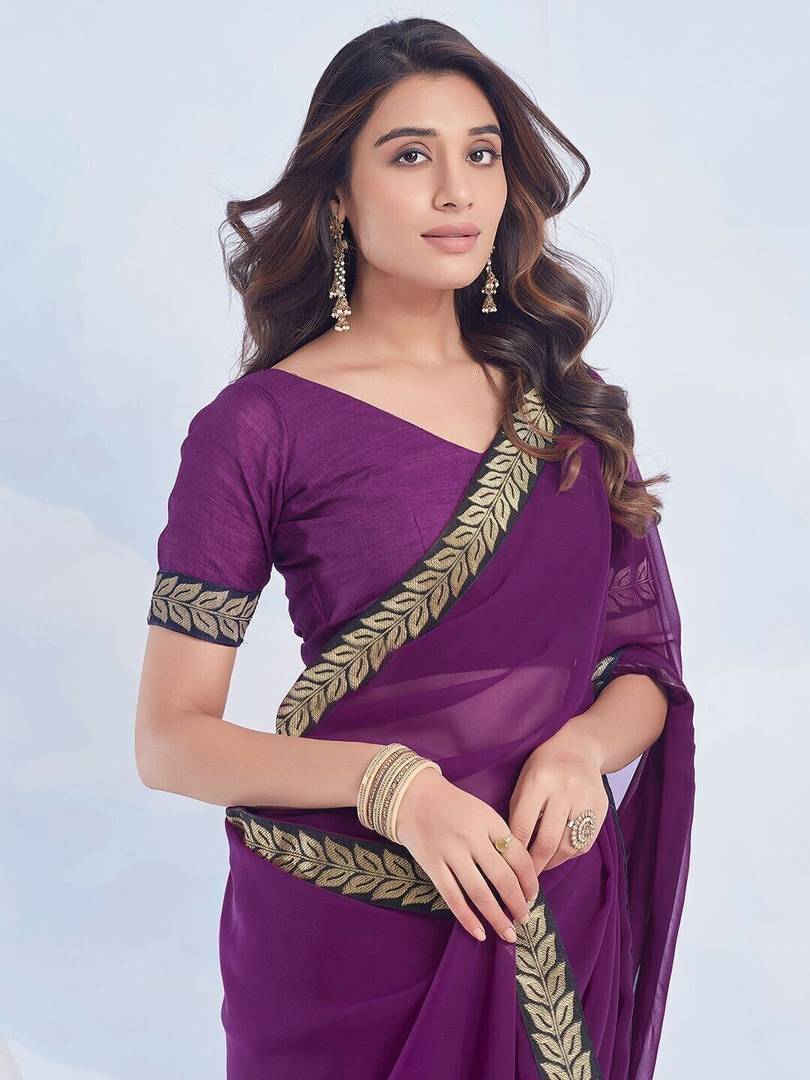 Use high quality purple georgette fabric both saree and blouse (Blouse is unstich), Use Gota patti lace with high quality stiching, gota pattin lace give a beatiful look.