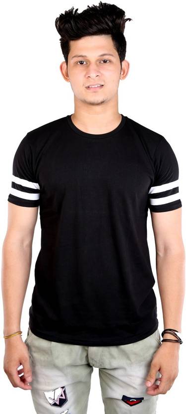 Men Solid Round Neck Cotton Blend Black T-Shirt