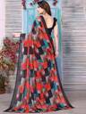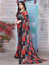 Floral Print Bollywood Georgette Saree (Black, Red)