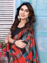 Falessa Floral Print Bollywood Georgette Saree (Black, Red)