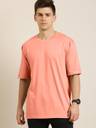 FALTU.CO Men Solid Round Neck Pure Cotton Orange T-Shirt