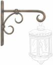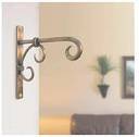 An antique golden finished iron wall bracket to hang lantern, platform clock, planter basket or decorative accessory, wall decor, Material: Iron, Color/ Finish: Antique golden finished, Dimensions (in inches): 7" x 1" x 7.5" Product information