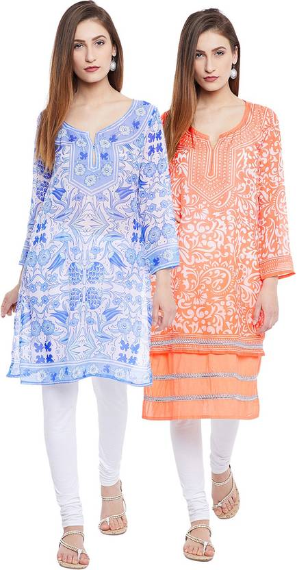 Famous by Payal Kapoor Pack of 2 Women Printed Cotton Rayon Straight Kurta (Multicolor)