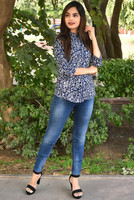 Built with an elegant mandarin collar, this top brings a touch of sophistication to your outfit. The hip-length cut of the top ensures a flattering silhouette that complements various body shapes. The regular fit offers comfortable wear. The three-quarter sleeves provide just the right amount of coverage, making the top suitable for different seasons and occasions.