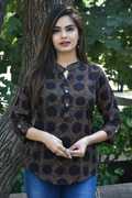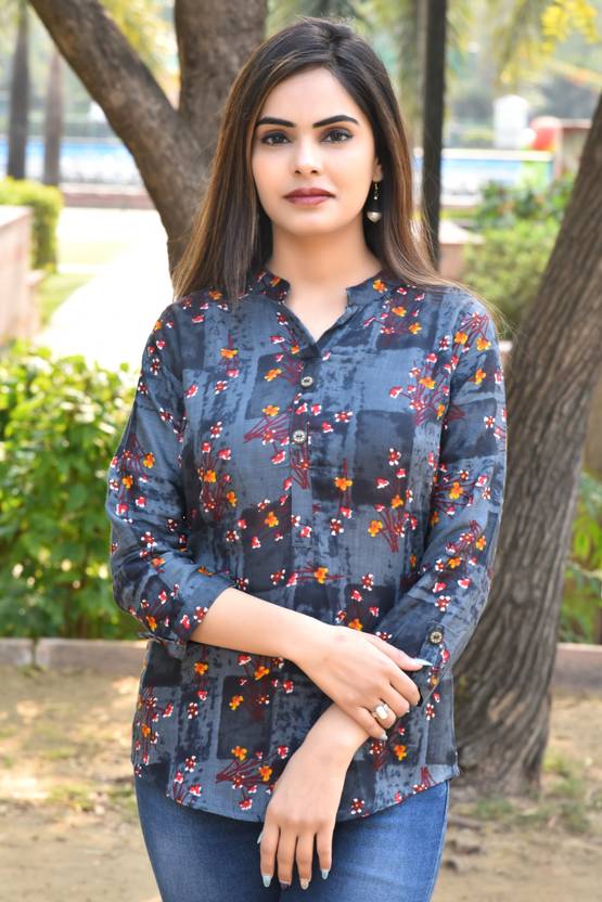FANCIFY Casual Striped Women Grey Top