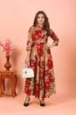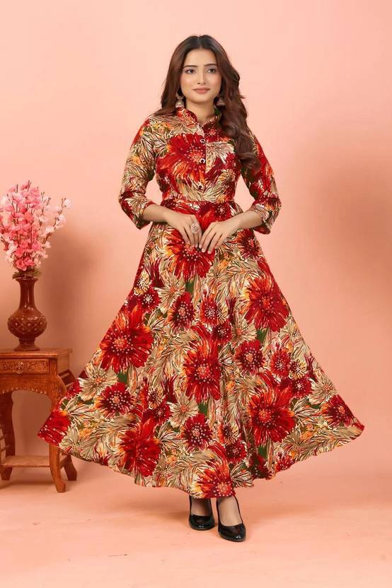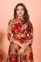 Printed Cotton Blend Stitched Anarkali Gown (Red)