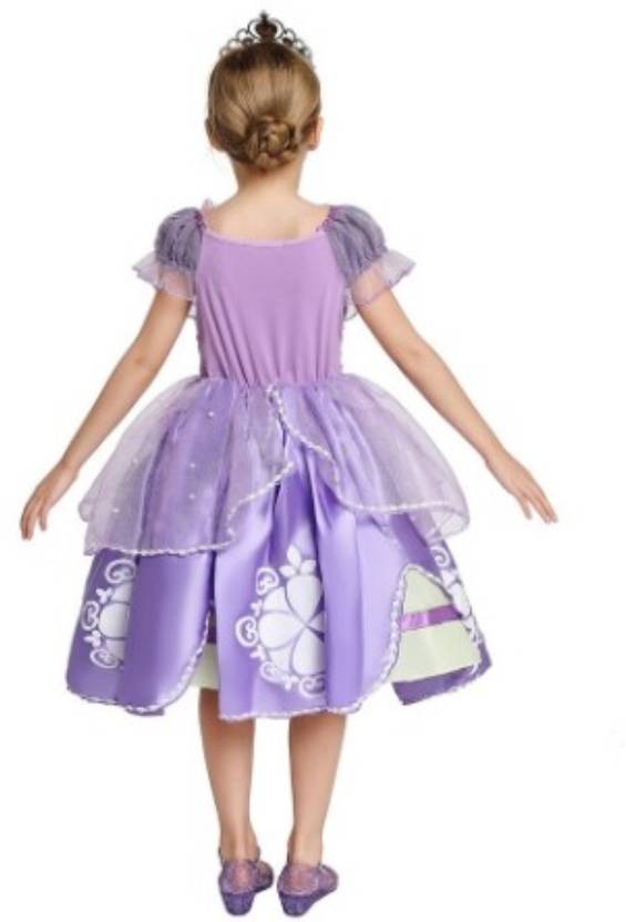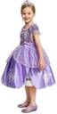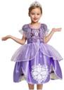 Girls Princess Sofia Costume Halloween Dress Stunning Princess Sofia style costume. The dress features with many elegant details with accessories.. Shimmery organza overlay on the chest, puff sleeves. Comfortable stretchable bodice has intricate beaded sequins, ruffles lace sleeves.. 5 layers fluffy skirt. First layer is a Shimmery organza overlay trimmed with floral appliques.. Second layer is satin with floral printing & trimming. The third layer is yellow satin trimmed with matching ribbon.. The lining is comfortable nylon satin attached with netting for additional fullness..