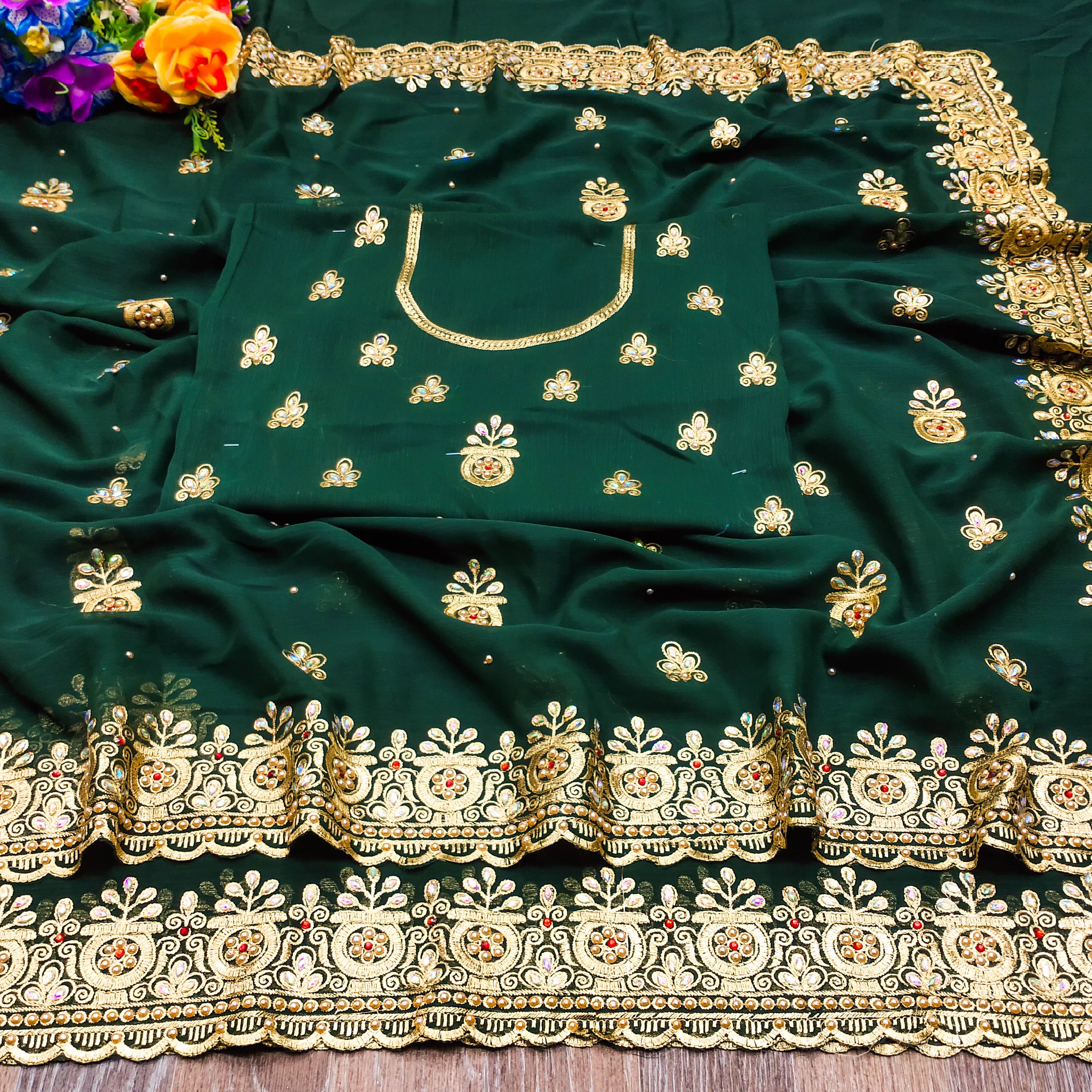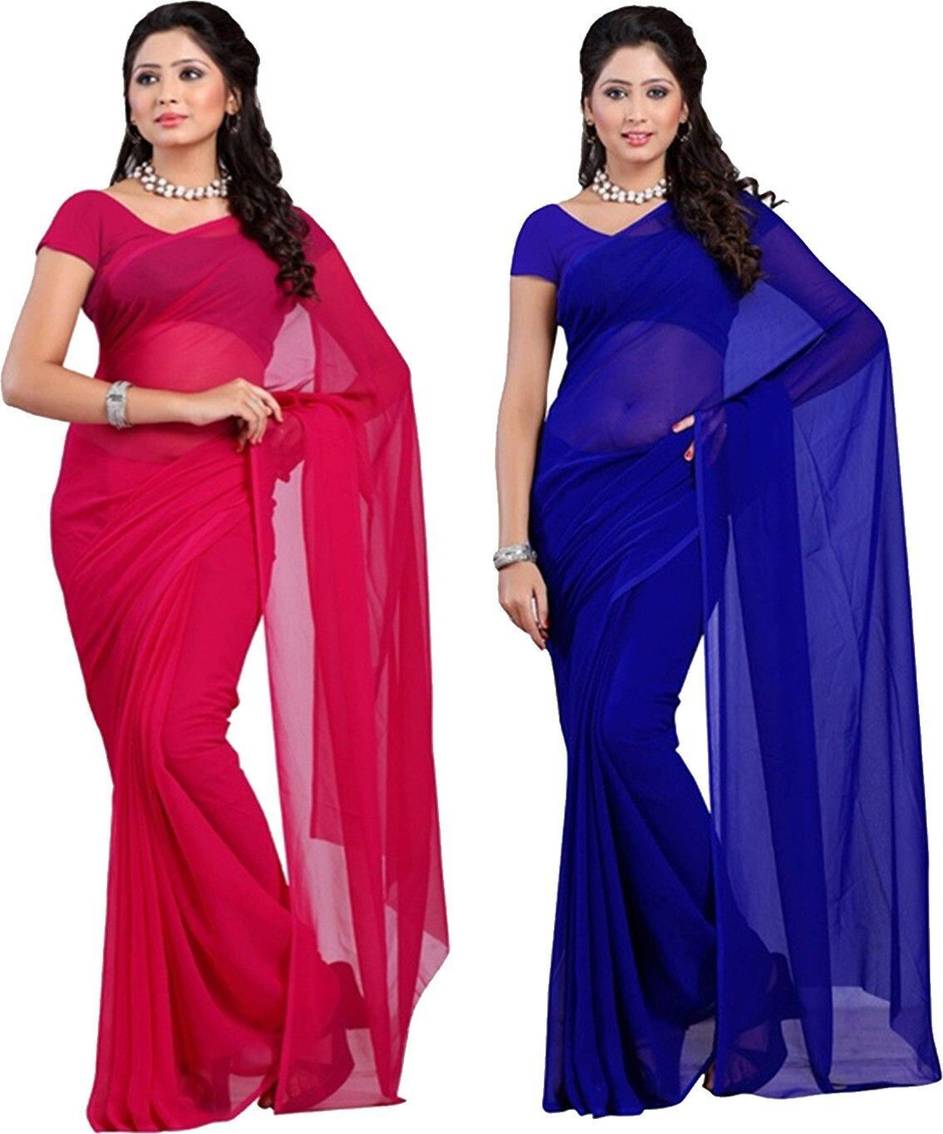 FANCYNINE Dyed Medium Turquoise and Pink Saree With Unstitched Blouse & Saree Fabric - Georgette, Blouse - Georgette, with Length of Saree - 5.5,Blouse - 0.8