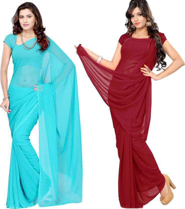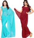FANCYNINE Dyed Medium Turquoise and Maroon Saree With Unstitched Blouse & Saree Fabric - Georgette, Blouse - Georgette, with Length of Saree - 5.5,Blouse - 0.8