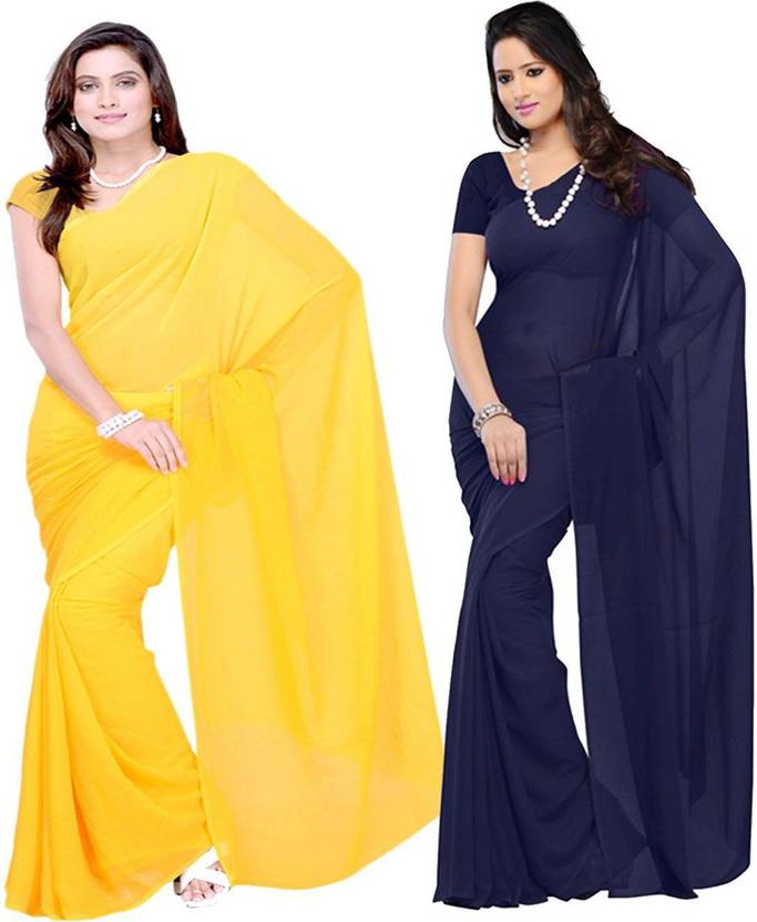 FANCYNINE Dyed Gold and Navy Blue Saree With Unstitched Blouse & Saree Fabric - Georgette, Blouse - Georgette, with Length of Saree - 5.5,Blouse - 0.8