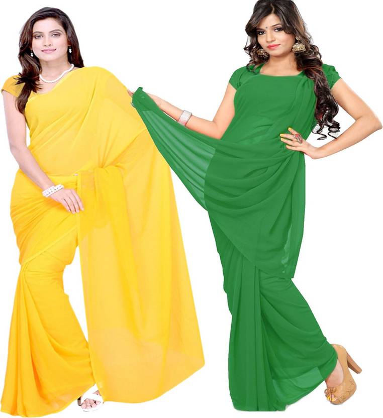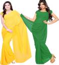 FANCYNINE Self Design Daily Wear Georgette Saree (Pack of 2, Yellow)