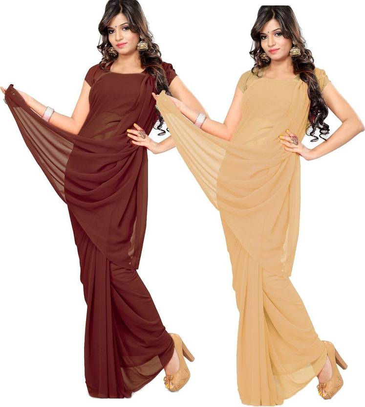 FANCYNINE Dyed Crimson and Brown Saree With Unstitched Blouse & Saree Fabric - Georgette, Blouse - Georgette, with Length of Saree - 5.5,Blouse - 0.8