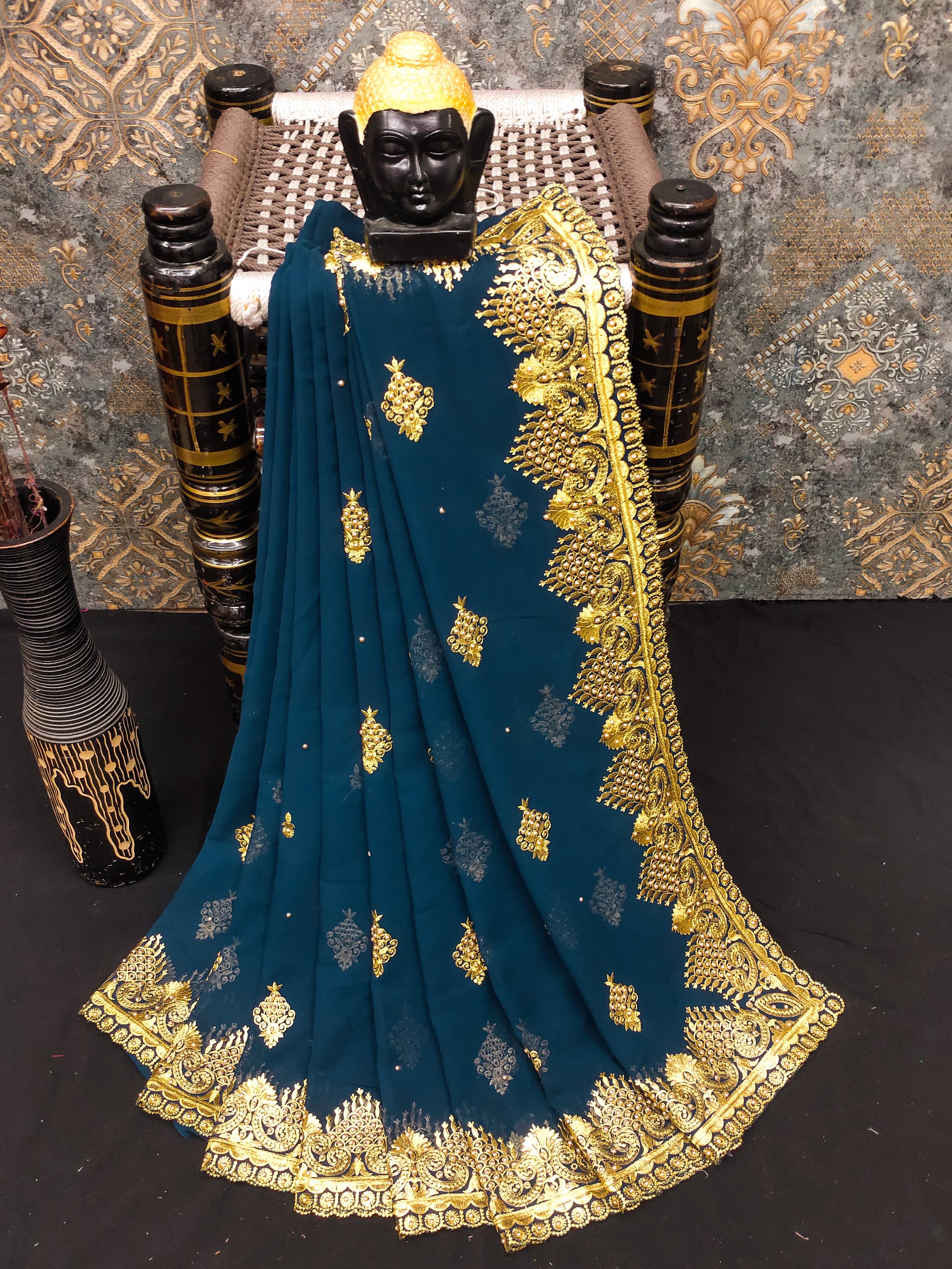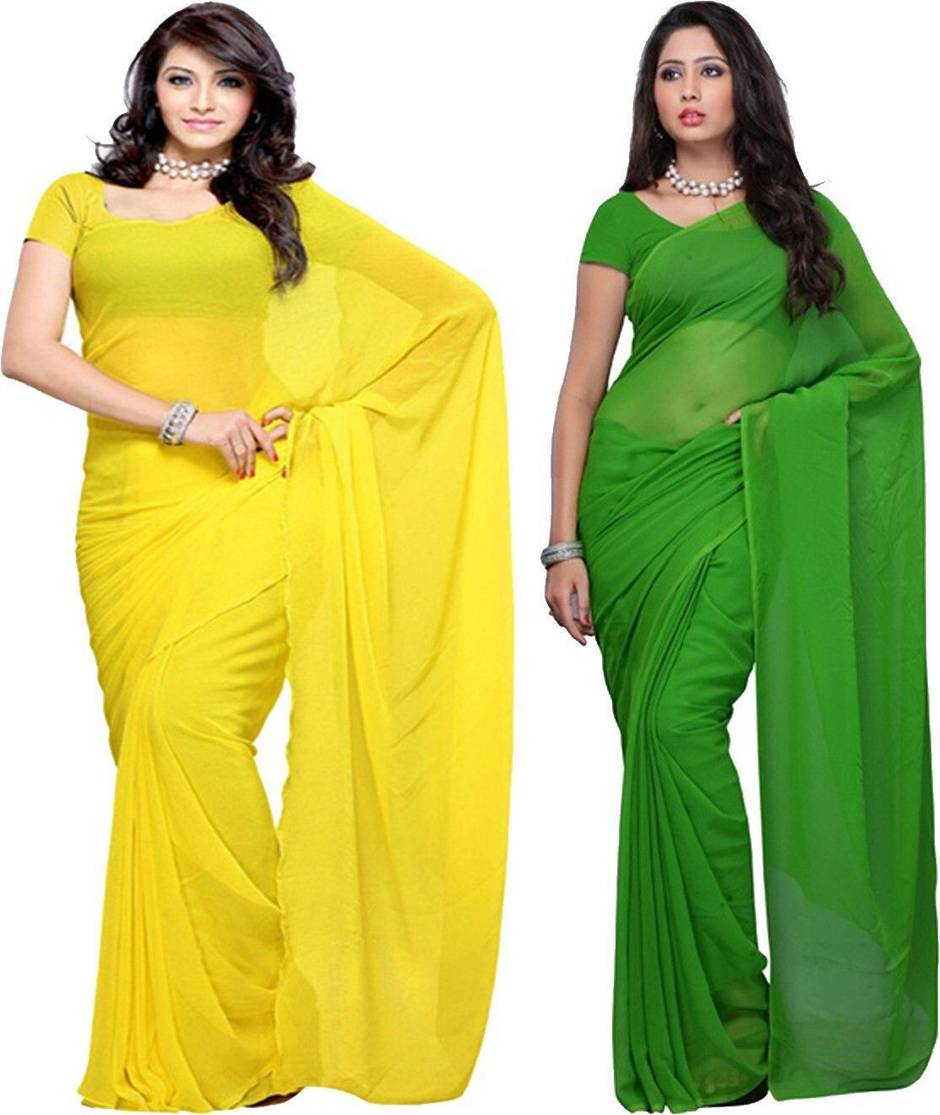 FANCYNINE Dyed Yellow and Mehandi Green Saree With Unstitched Blouse & Saree Fabric - Georgette, Blouse - Georgette, with Length of Saree - 5.5,Blouse - 0.8