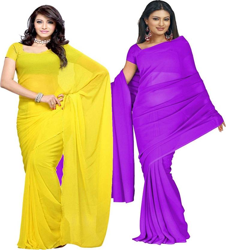 FANCYNINE Dyed Yellow and Medium Purlpe Saree With Unstitched Blouse & Saree Fabric - Georgette, Blouse - Georgette, with Length of Saree - 5.5,Blouse - 0.8
