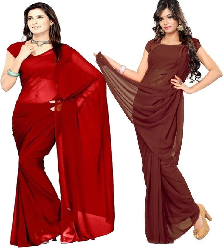 FANCYNINE Dyed Crimson and Brown Saree With Unstitched Blouse & Saree Fabric - Georgette, Blouse - Georgette, with Length of Saree - 5.5,Blouse - 0.8