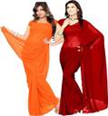 FANCYNINE Dyed Orange Red and Crimson Saree With Unstitched Blouse & Saree Fabric - Georgette, Blouse - Georgette, with Length of Saree - 5.5,Blouse - 0.8