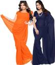FANCYNINE Dyed Orange Red and Navy Blue Saree With Unstitched Blouse & Saree Fabric - Georgette, Blouse - Georgette, with Length of Saree - 5.5,Blouse - 0.8