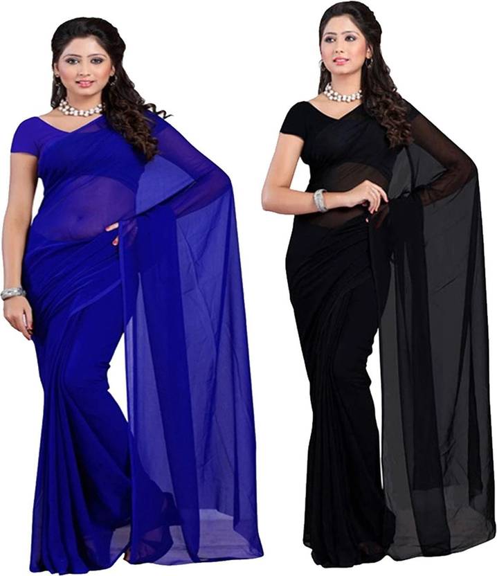 FANCYNINE Dyed Royal Blue and Black Saree With Unstitched Blouse & Saree Fabric - Georgette, Blouse - Georgette, with Length of Saree - 5.5,Blouse - 0.8