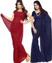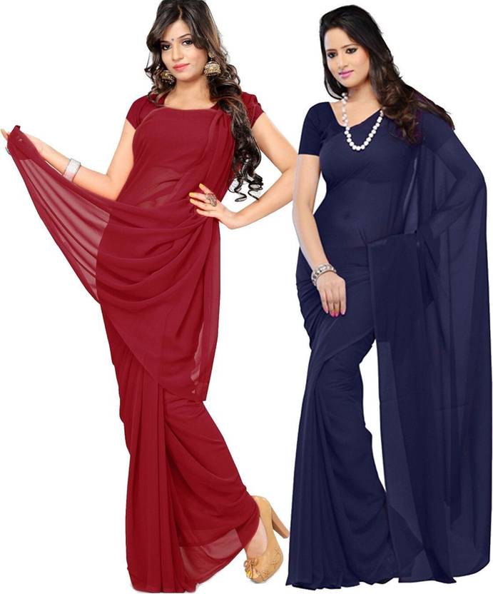 FANCYNINE Dyed Maroon and Navy Blue Saree With Unstitched Blouse & Saree Fabric - Georgette, Blouse - Georgette, with Length of Saree - 5.5,Blouse - 0.8