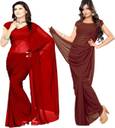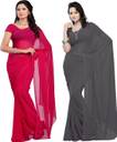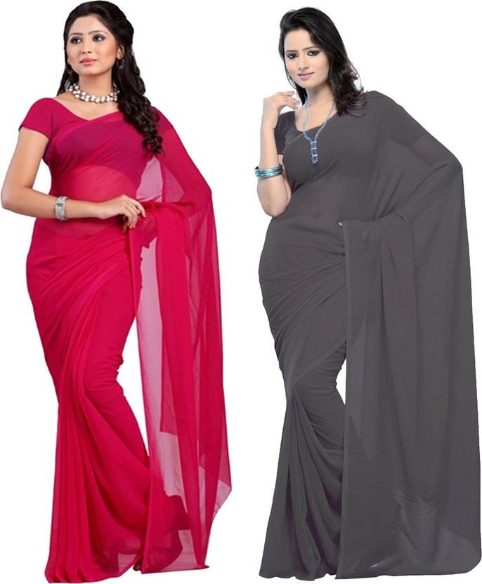 FANCYNINE Dyed Tomato and Grey Saree With Unstitched Blouse & Saree Fabric - Georgette, Blouse - Georgette, with Length of Saree - 5.5,Blouse - 0.8