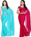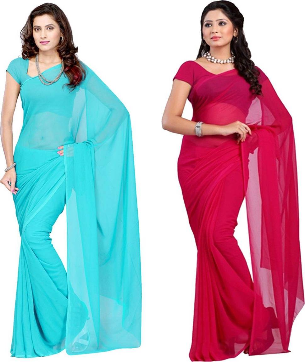 FANCYNINE Dyed Medium Turquoise and Tomato Saree With Unstitched Blouse & Saree Fabric - Georgette, Blouse - Georgette, with Length of Saree - 5.5,Blouse - 0.8
