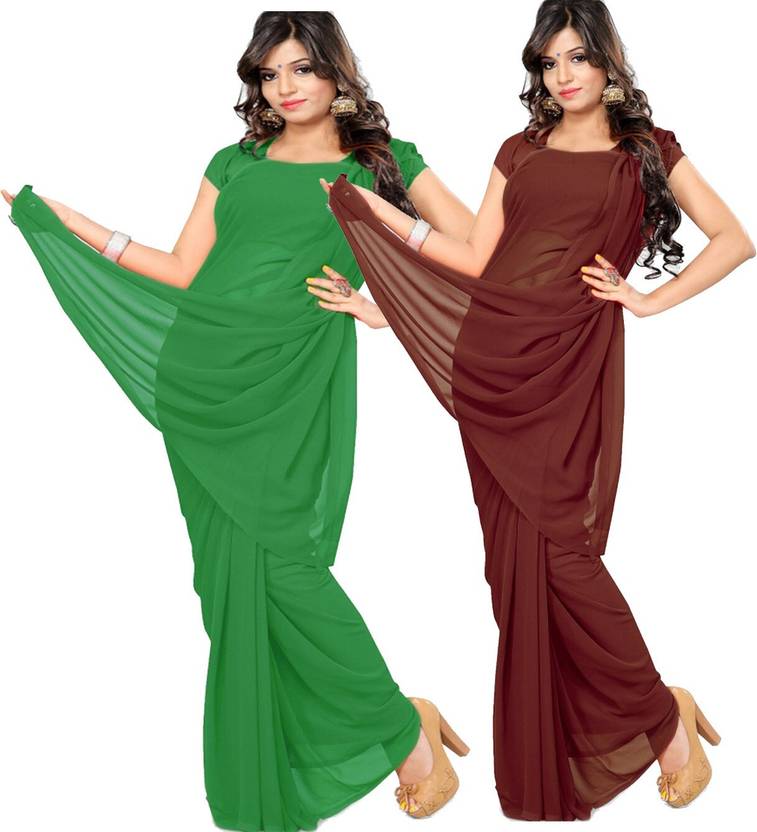 Self Design Daily Wear Georgette Saree (Pack of 2, Green, Brown)