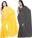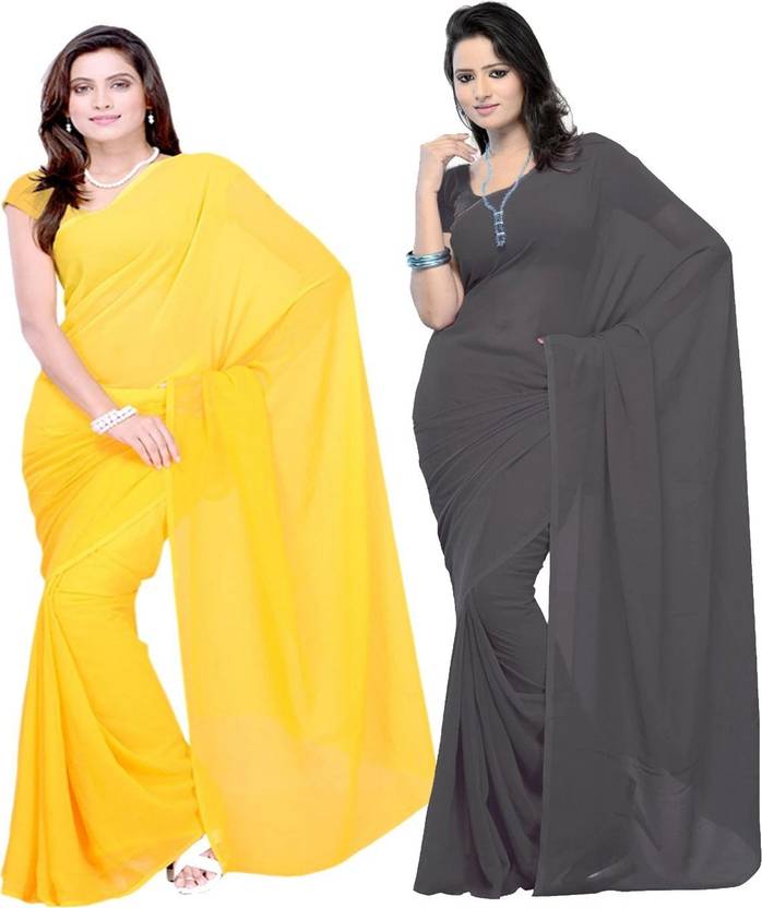FANCYNINE Dyed Gold and Grey Saree With Unstitched Blouse & Saree Fabric - Georgette, Blouse - Georgette, with Length of Saree - 5.5,Blouse - 0.8