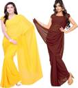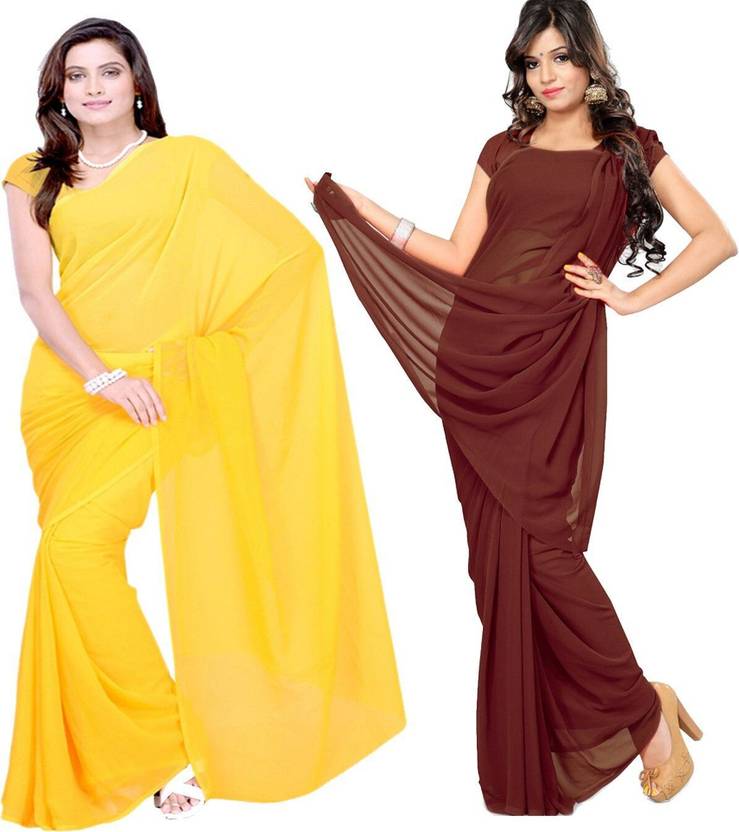 FANCYNINE Dyed Gold and Brown Saree With Unstitched Blouse & Saree Fabric - Georgette, Blouse - Georgette, with Length of Saree - 5.5,Blouse - 0.8