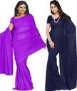 FANCYNINE Dyed Medium Purlpe and Navy Blue Saree With Unstitched Blouse & Saree Fabric - Georgette, Blouse - Georgette, with Length of Saree - 5.5,Blouse - 0.8