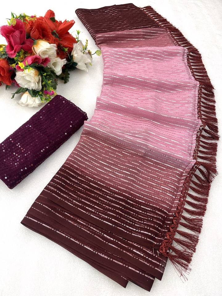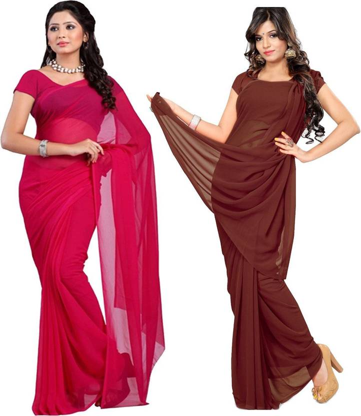 FANCYNINE Dyed Tomato and Brown Saree With Unstitched Blouse & Saree Fabric - Georgette, Blouse - Georgette, with Length of Saree - 5.5,Blouse - 0.8