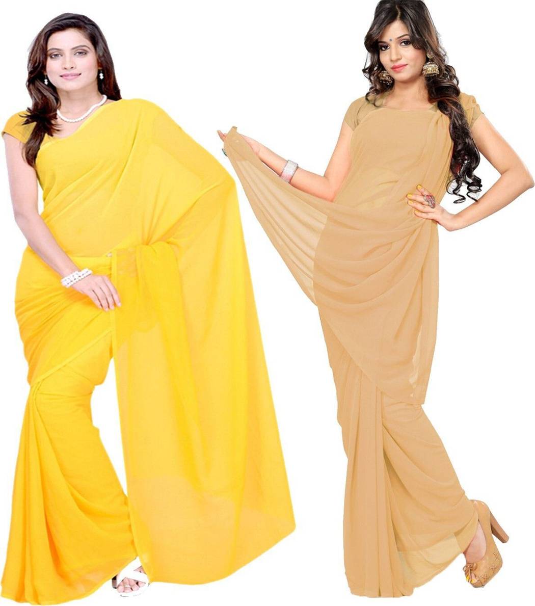 FANCYNINE Dyed Yellow and Orange Red Saree With Unstitched Blouse & Saree Fabric - Georgette, Blouse - Georgette, with Length of Saree - 5.5,Blouse - 0.8