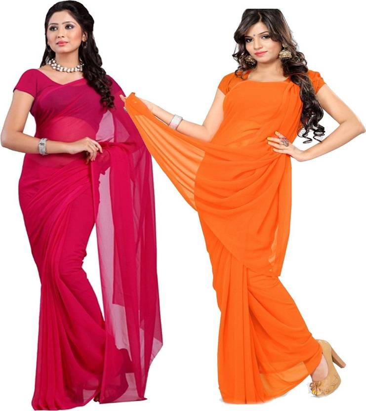 FANCYNINE Dyed Tomato and orange Saree With Unstitched Blouse & Saree Fabric - Georgette, Blouse - Georgette, with Length of Saree - 5.5,Blouse - 0.8