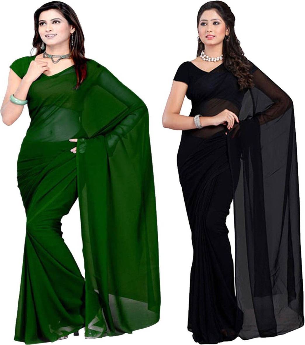 FANCYNINE Dyed Dark Green and Black Saree With Unstitched Blouse & Saree Fabric - Georgette, Blouse - Georgette, with Length of Saree - 5.5,Blouse - 0.8