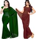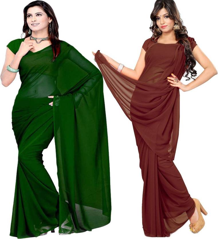 FANCYNINE Dyed Dark Green and Brown Saree With Unstitched Blouse & Saree Fabric - Georgette, Blouse - Georgette, with Length of Saree - 5.5,Blouse - 0.8