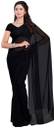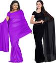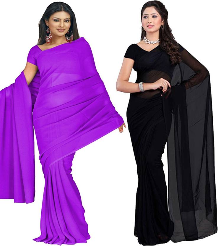 FANCYNINE Dyed Medium Purlpe and Black Saree With Unstitched Blouse & Saree Fabric - Georgette, Blouse - Georgette, with Length of Saree - 5.5,Blouse - 0.8
