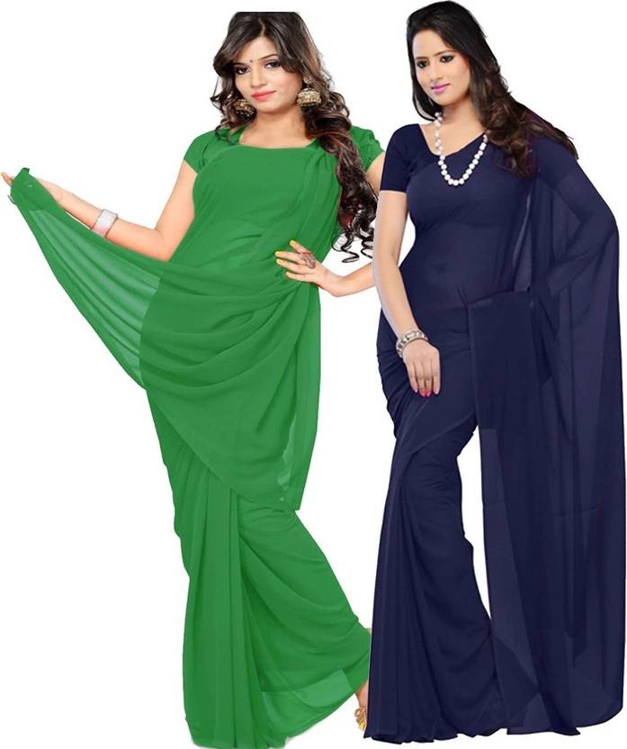 FANCYNINE Dyed Forest Green and Navy Blue Saree With Unstitched Blouse & Saree Fabric - Georgette, Blouse - Georgette, with Length of Saree - 5.5,Blouse - 0.8