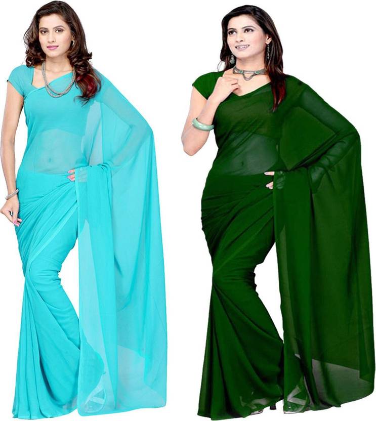 FANCYNINE Dyed Medium Turquoise and Medium Violet Saree With Unstitched Blouse & Saree Fabric - Georgette, Blouse - Georgette, with Length of Saree - 5.5,Blouse - 0.8