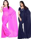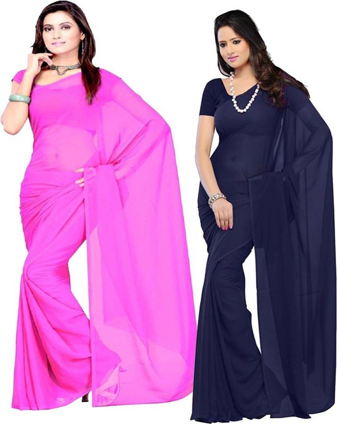 FANCYNINE Dyed Pink and Navy Blue Saree With Unstitched Blouse & Saree Fabric - Georgette, Blouse - Georgette, with Length of Saree - 5.5,Blouse - 0.8