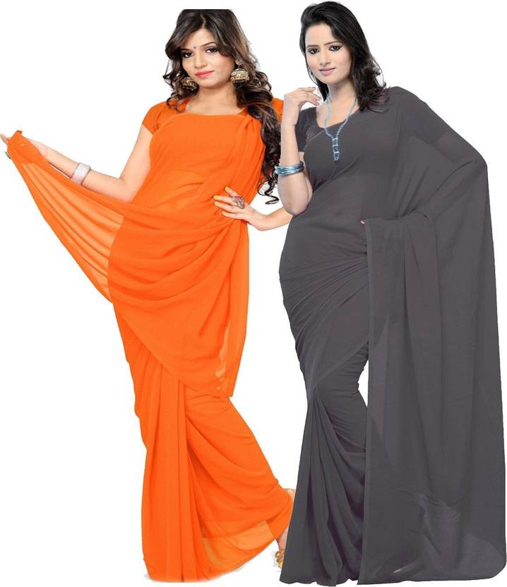 FANCYNINE Dyed Orange Red and Grey Saree With Unstitched Blouse & Saree Fabric - Georgette, Blouse - Georgette, with Length of Saree - 5.5,Blouse - 0.8