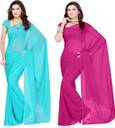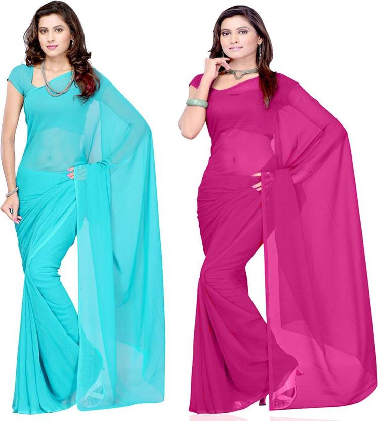 FANCYNINE Dyed Medium Turquoise and Medium Violet Saree With Unstitched Blouse & Saree Fabric - Georgette, Blouse - Georgette, with Length of Saree - 5.5,Blouse - 0.8